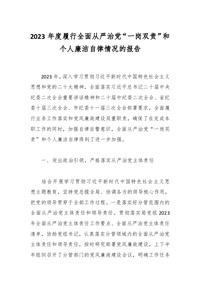 2023年度履行全面从严治党“一岗双责”和个人廉洁自律情况的