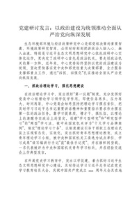 研讨发言:以政治建设为统领推动全面从严治党向纵深发展