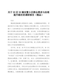 关于XX区XX镇安置小区群众需求与治理提升路径的