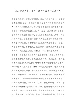 乡村特色产业:让“土特产”成为“金名片”