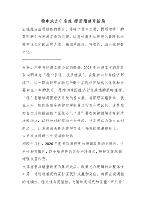 稳中求进守底线 提质增效开新局