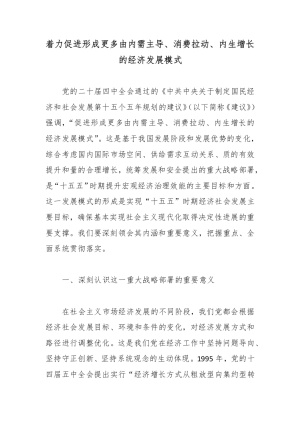 着力促进形成更多由内需主导、消费拉动、内生增长的经济发展模式