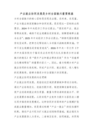 产业就业协同发展是乡村全面振兴重要根基