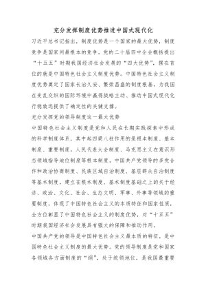 充分发挥制度优势推进中国式现代化