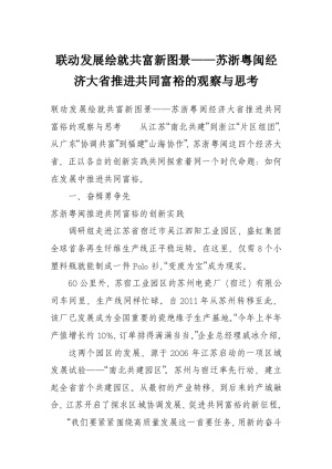 联动发展绘就共富新图景——苏浙粤闽经济大省推进共同富裕的观察与思考