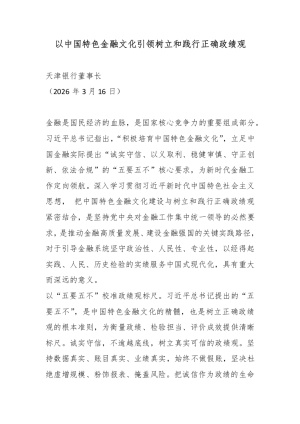 以中国特色金融文化引领树立和践行正确政绩观