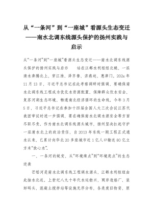 从“一条河”到“一座城”看源头生态变迁——南水北调东线源头保护的扬州实践与启示
