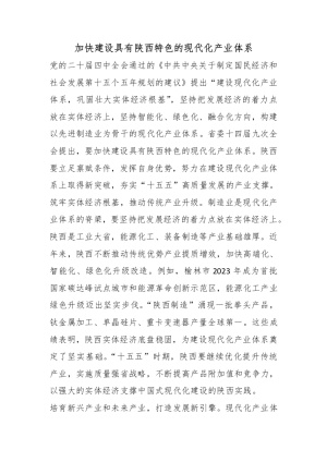 加快建设具有陕西特色的现代化产业体系