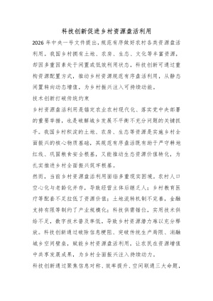 科技创新促进乡村资源盘活利用