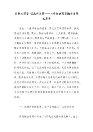 依托大西安 谋求大发展——关于加速西商融合发展的思考