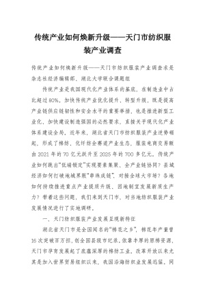 传统产业如何焕新升级——天门市纺织服装产业调查