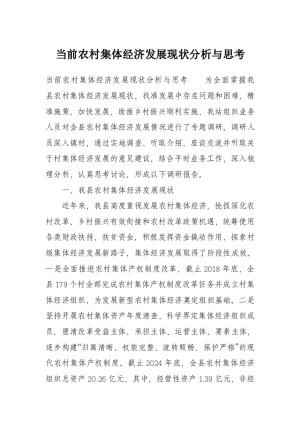 当前农村集体经济发展现状分析与思考