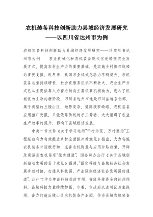 农机装备科技创新助力县域经济发展研究——以四川省达州市为例