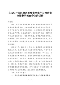 在XX开发区第四季度安全生产与消防安全暨警示