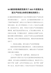 XX城投控股集团党委关于2025年度落实全面从严治党主体责任情况的报告1