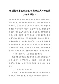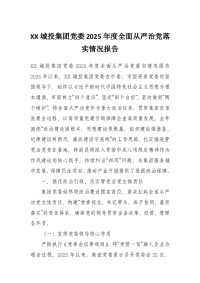XX城投集团党委2025年度全面从严治党落实情况报告