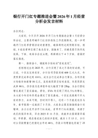 银行开门红专题推进会暨2026年1月经营分析会发言材料
