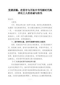 党课讲稿:在坚守与开拓中书写新时代海洋化工人的忠诚与担当