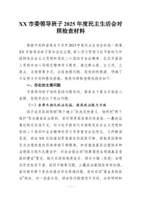 XX市委领导班子2025年度民主生活会对照检查材料