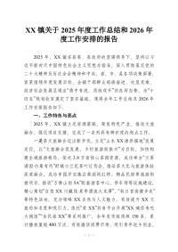 XX镇关于2025年度工作总结和2026年度工作安排的报告