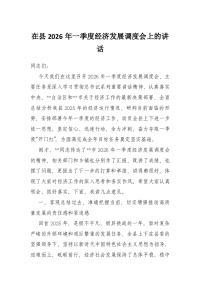 在县2026年一季度经济运行“开门红”调度会议上的讲话