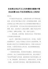 在县群众身边不正之风和腐败问题集中整治总结暨2026年动员部署会议上的讲话