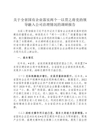 关于全省国有企业落实两个一以贯之将党的领导融入公司治理情况的