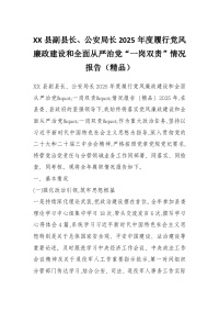 XX县副县长、公安局长2025年度履行党风廉政建设和全面从严治党“一岗双责”情况