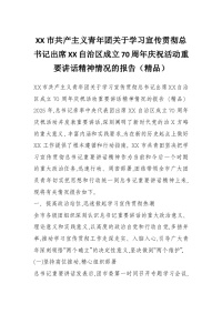 XX市共产主义青年团关于学习宣传贯彻总书记出席XX自治区成立70周年庆祝活动重要讲话精神情况的