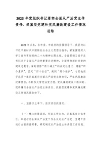 2023年党组织书记落实全面从严治党主体责任、抓基层