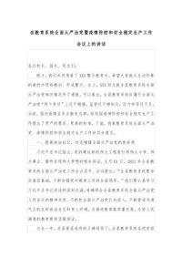 系统全面从严治党暨疫情防控和安全稳定生产工作会议上的讲话