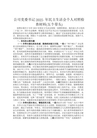 公司党委书记2025年民主生活会个人对照检查材料(五个带头)