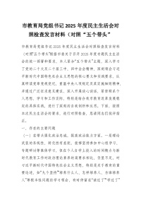 局党组书记2025年度民主生活会对照检查发言材料(对照“五个带头”