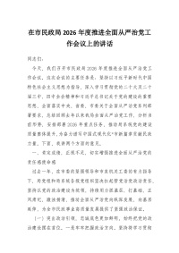 在市民政局2026年度推进全面从严治党工作