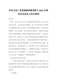 在市文化广电和旅游局领导班子2025年度民主