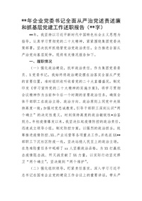 2022年国企党委书记全面从严治党述责述廉和抓基层
