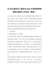 XX社区退役军人服务站2025年度档案管理规范化建设工作总结(精品)