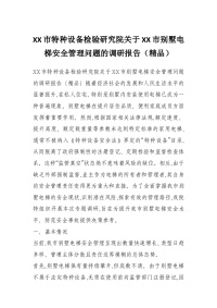 XX市特种设备检验研究院关于XX市别墅电梯安全管理问题的