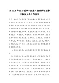 在2025年全县领导干部集体廉政谈话暨警示