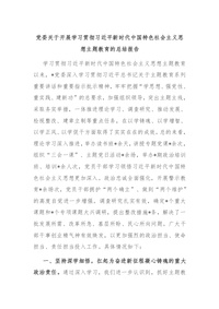 党委关于开展学习贯彻***新时代中国特色社会主义思想主题教育的总结