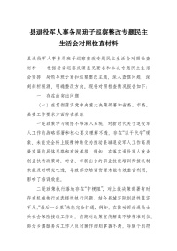 县退役军人事务局班子巡察整改专题民主生活会对照检查材料