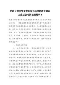 铁路公安分管治安副处长违规饮酒专题民主生活会对照检查材料2