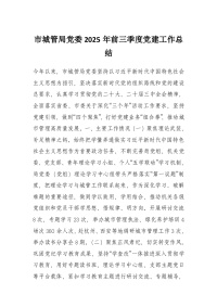 市城管局党委2025年前三季度党建工作总结