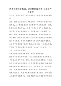 陕西交控投资集团:以训赋能强本领 以投促产启新程_副本