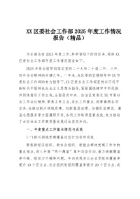 XX区委社会工作部2025年度工作情况