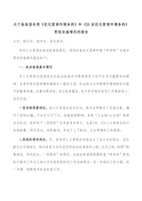 关于检查国务院《优化营商环境条例》和《XX省优化营商环境条例》贯彻实施情况的