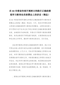 在XX市委宣传部开展树立和践行正确政绩观学习教育动员部署会上的讲话(精品)