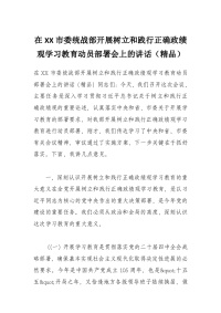 在XX市委统战部开展树立和践行正确政绩观学习教育动员部署会上的讲话(精品)