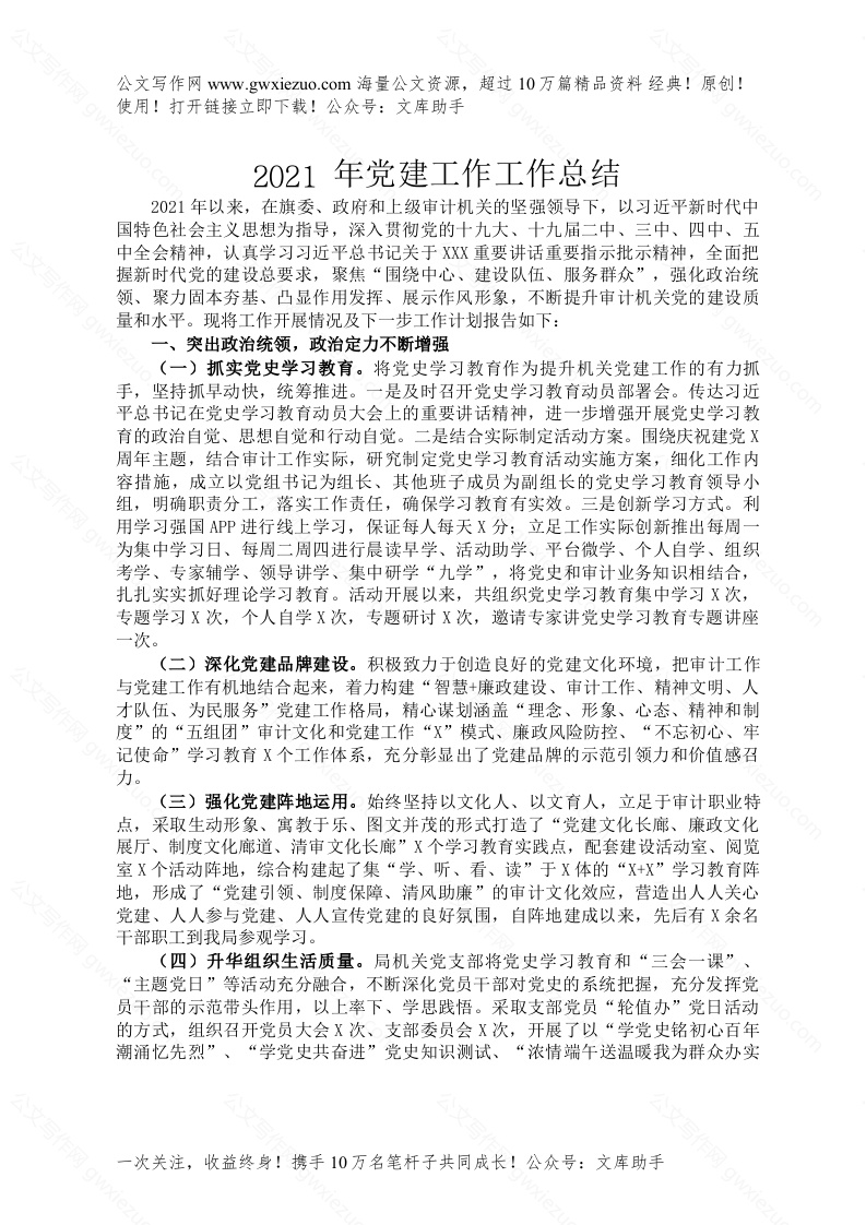 首页写作素材2021年党建工作工作总结