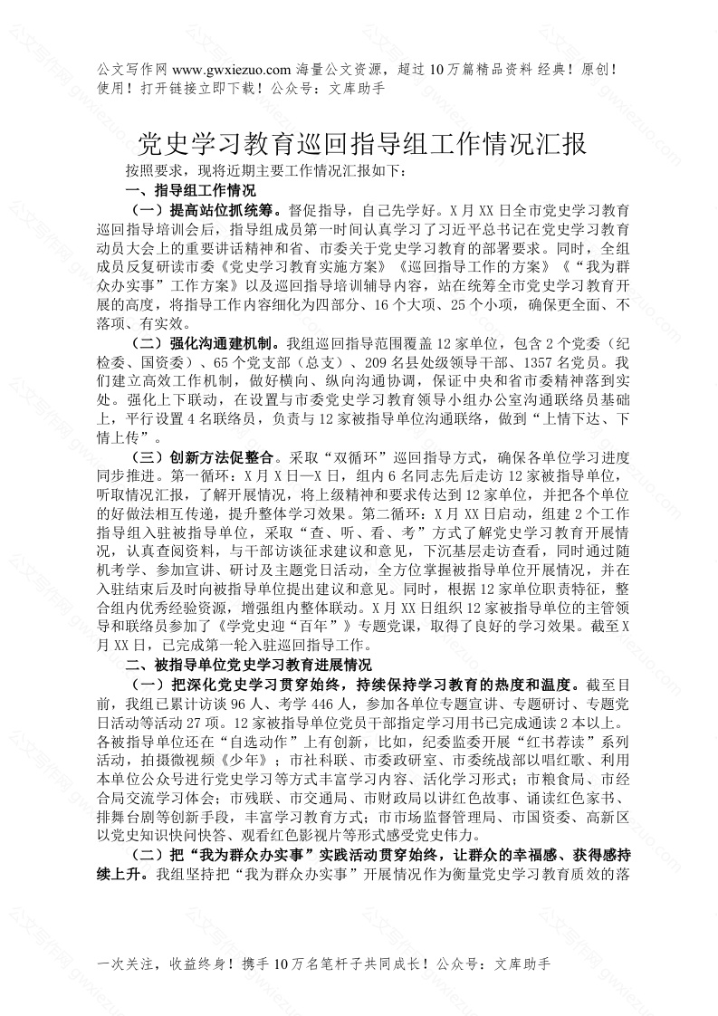 首页写作素材党史学习教育巡回指导组工作情况汇报
